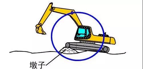 在上述條件下正確的處理方式是,如圖所示在挖機(jī)的履帶前整一個(gè)土堆,從而使挖掘機(jī)處于穩(wěn)定狀態(tài),就可以進(jìn)行正常工作了。?