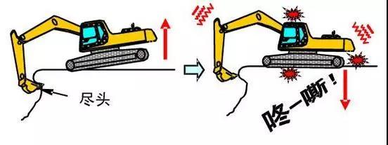 2.油缸桿伸縮到極限進(jìn)行挖掘作業(yè)