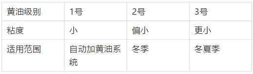黃油分1#、 2# 、3#,分級(jí)不一樣,粘度也不一樣(俗稱軟硬度不同),號(hào)數(shù)越大,粘度越大。
